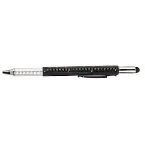 Caneta Multifunções Descrição: Caneta multifunções, contém réguas com medição em centímetros alcance 7cm e polegadas alcance 3pol , medidor de nível, compartimento superior touch que pode ser desrosqueado para o acesso de mini chaves: Philips e Fenda. Caneta com pintura colorida e detalhes em prata, possui clip metálico e área inferior texturizada. Acionamento por rotação, carga esferográfica na cor preto. Largura : 1,4 cm Comprimento : 14,8 cm Medidas aproximadas para gravação CxL : 4 cm x 0,5 cm Peso aproximado g : 12