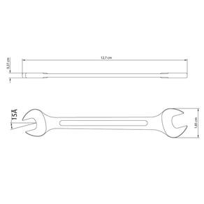Aperte ou afrouxe parafusos e porcas com eficiência e praticidade, para isso, utilize a Chave Fixa 1/4x5/16 polegadas Tramontina com Corpo em Aço Especial Cromado. A chave é produzida em aço especial e temperado, o que garante mais resistência e durabilidade ao material. Suas atividades muito mais facilitadas é com a Tramontina! Orientações Corpo forjado em aço especial e temperado.Acabamento cromado.Abertura das bocas calibradas.O teste de dureza é realizado em vários pontos para assegurar a resistência ao desgaste da chave durante o uso ininterrupto. As aberturas das bocas das chaves de aperto são verificadas com gabaritos calibrados, o que garante seu perfeito acoplamento nos parafusos.Alguns tipos de chaves de aperto são fornecidos em bitolas métricas e em polegadas, para o uso nos diversos fixadores disponíveis.As ferramentas são produzidas e testadas conforme normas específicas. Observações Use óculos, luvas e outros equipamentos de proteção de acordo com a tarefa a ser executada. Não golpeie as chaves, a não ser que sejam projetadas para este fim. Sempre utilize uma chave de bitola correta para cada parafuso ou porca para que não haja folga, pois isso danifica a chave e o parafuso. Mantenha a chave limpa para um melhor agarre, pois usá-la suja com graxa ou óleo pode causar acidentes. Não use tubos ou extensões para obter mais torque. Não altere a forma original das chaves. Armazene em local limpo e seco. Características Gerais EAN13 7891114008906 DUN14 17891114008903 NCM 8204.11.00 Peso Líquido 0,0300 kg. Peso Bruto 0,0300 kg. Metragem 0,000208 m³. Dimensões Embalagem (Compr. X Larg. X Alt.) 208x 50x 20 mm. Dimensões Produto (Compr. X Larg. X Alt.) 127x 18x 4 mm. Dimensão Extra A 3,7 mm. Dimensão Extra B 127,0 mm. Dimensão Extra C 18,5 mm.