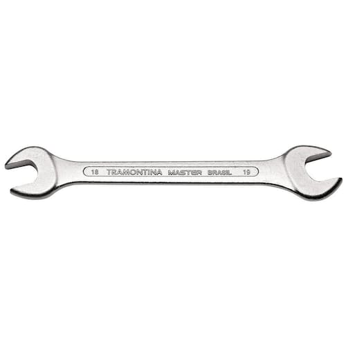 Esteja munido de itens de qualidade e obtenha mais facilidade e eficiência na execução das suas tarefas. A peça possui corpo em aço especial cromado, que fornece mais resistência e durabilidade. Assim, a hora de apertar e afrouxar parafusos ou porcas vai ser ainda mais fácil de ser realizada. A qualidade que você busca, a Tramontina tem! Orientações Corpo forjado em aço especial e temperado.Acabamento cromado.Abertura das bocas calibradas.O teste de dureza é realizado em vários pontos para assegurar a resistência ao desgaste da chave durante o uso ininterrupto. As aberturas das bocas das chaves de aperto são verificadas com gabaritos calibrados, o que garante seu perfeito acoplamento nos parafusos.Alguns tipos de chaves de aperto são fornecidos em bitolas métricas e em polegadas, para o uso nos diversos fixadores disponíveis.As ferramentas são produzidas e testadas conforme normas específicas. Observações Use óculos, luvas e outros equipamentos de proteção de acordo com a tarefa a ser executada. Não golpeie as chaves, a não ser que sejam projetadas para este fim. Sempre utilize uma chave de bitola correta para cada parafuso ou porca para que não haja folga, pois isso danifica a chave e o parafuso. Mantenha a chave limpa para um melhor agarre, pois usá-la suja com graxa ou óleo pode causar acidentes. Não use tubos ou extensões para obter mais torque. Não altere a forma original das chaves. Armazene em local limpo e seco. Características Gerais EAN13 7891114009040 DUN14 17891114009047 NCM 8204.11.00 Peso Líquido 0,1600 kg. Peso Bruto 0,1600 kg. Metragem 0,000270 m³. Dimensões Embalagem (Compr. X Larg. X Alt.) 270x 50x 20 mm. Dimensões Produto (Compr. X Larg. X Alt.) 210x 43x 7 mm. Dimensão Extra A 7,5 mm. Dimensão Extra B 210,0 mm. Dimensão Extra C 43,0 mm.