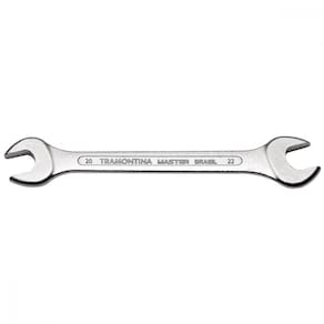 Corpo forjado em aço especial e temperado.Acabamento cromado.Abertura das bocas calibradas.O teste de dureza é realizado em vários pontos para assegurar a resistência ao desgaste da chave durante o uso ininterrupto. As aberturas das bocas das chaves de aperto são verificadas com gabaritos calibrados, o que garante seu perfeito acoplamento nos parafusos.Alguns tipos de chaves de aperto são fornecidos em bitolas métricas e em polegadas, para o uso nos diversos fixadores disponíveis.As ferramentas são produzidas e testadas conforme normas específicas. Ao realizar consertos e demais demandas que exigem manutenções de parafusos e porcas, utilize a Chave Fixa 20x22 mm Tramontina com Corpo em Aço Especial Cromado. A peça possui corpo em aço especial cromado, que proporciona maior durabilidade e segurança na utilização.