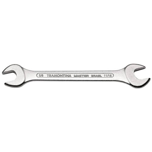 Sua caixa de ferramentas fica ainda mais completa com itens essenciais e de qualidade. Para isso, utilize a Chave Fixa 5/8x11/16 polegadas Tramontina com Corpo em Aço Especial Cromado e tenha muito mais qualidade e versatilidade na hora de apertar ou afrouxar parafusos e porcas. A peça possui corpo em aço especial temperado, o que proporciona mais durabilidade e resistência ao material e consequentemente às suas tarefas. Facilidade e eficiência é com a Tramontina! Orientações Corpo forjado em aço especial e temperado.Acabamento cromado.Abertura das bocas calibradas.O teste de dureza é realizado em vários pontos para assegurar a resistência ao desgaste da chave durante o uso ininterrupto. As aberturas das bocas das chaves de aperto são verificadas com gabaritos calibrados, o que garante seu perfeito acoplamento nos parafusos.Alguns tipos de chaves de aperto são fornecidos em bitolas métricas e em polegadas, para o uso nos diversos fixadores disponíveis.As ferramentas são produzidas e testadas conforme normas específicas. Observações Use óculos, luvas e outros equipamentos de proteção de acordo com a tarefa a ser executada. Não golpeie as chaves, a não ser que sejam projetadas para este fim. Sempre utilize uma chave de bitola correta para cada parafuso ou porca para que não haja folga, pois isso danifica a chave e o parafuso. Mantenha a chave limpa para um melhor agarre, pois usá-la suja com graxa ou óleo pode causar acidentes. Não use tubos ou extensões para obter mais torque. Não altere a forma original das chaves. Armazene em local limpo e seco. Características Gerais EAN13 7891114008937 DUN14 17891114008934 NCM 8204.11.00 Peso Líquido 0,1200 kg. Peso Bruto 0,1200 kg. Metragem 0,000255 m³. Dimensões Embalagem (Compr. X Larg. X Alt.) 255x 50x 20 mm. Dimensões Produto (Compr. X Larg. X Alt.) 195x 38x 6 mm. Dimensão Extra A 6,5 mm. Dimensão Extra B 195,0 mm. Dimensão Extra C 38,5 mm.