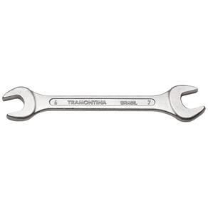 A Chave Fixa 6x7 mm Tramontina Basic com Corpo em Aço Especial Cromado é a ferramenta perfeita para você! Ideal para apertar e afrouxar parafusos ou porcas com perfil quadrado ou sextavado, se encaixa perfeitamente, sem soltar ou apresentar folgas. O corpo produzido em aço especial temperado faz toda a diferença e o acabamento cromado dá o toque especial à essa ferramenta resistente e altamente durável. Um produto indispensável para sua caixa de ferramentas! Orientações Corpo forjado em aço especial e temperado.Acabamento cromado.Abertura das bocas calibradas.O teste de dureza é realizado em vários pontos para assegurar a resistência ao desgaste da chave durante o uso ininterrupto. As aberturas das bocas das chaves de aperto são verificadas com gabaritos calibrados, o que garante seu perfeito acoplamento nos parafusos.Alguns tipos de chaves de aperto são fornecidos em bitolas métricas e em polegadas, para o uso nos diversos fixadores disponíveis.As ferramentas são produzidas e testadas conforme normas específicas. Observações Use óculos, luvas e outros equipamentos de proteção de acordo com a tarefa a ser executada. Não golpeie as chaves, a não ser que sejam projetadas para este fim. Sempre utilize uma chave de bitola correta para cada parafuso ou porca para que não haja folga, pois isso danifica a chave e o parafuso. Mantenha a chave limpa para um melhor agarre, pois usá-la suja com graxa ou óleo pode causar acidentes. Não use tubos ou extensões para obter mais torque. Não altere a forma original das chaves. Armazene em local limpo e seco. Características Gerais EAN13 7891114063448 DUN14 17891114063445 NCM 8204.11.00 Peso Líquido 0,0300 kg. Peso Bruto 0,0300 kg. Metragem 0,000103 m³. Dimensões Embalagem (Compr. X Larg. X Alt.) 195x 53x 10 mm. Dimensões Produto (Compr. X Larg. X Alt.) 111x 18x 4 mm. Dimensão Extra A 4,1 mm. Dimensão Extra B 111,0 mm. Dimensão Extra C 18,5 mm.