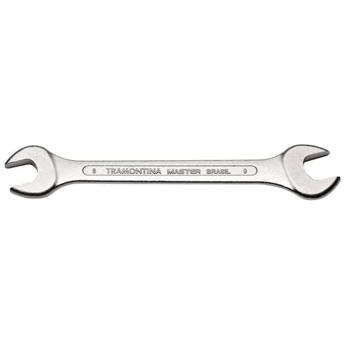 Suas tarefas se tornam ainda mais eficientes com a Chave Fixa 8x9 mm Tramontina com Corpo em Aço Especial Cromado. A peça apresenta corpo em aço especial cromado, que oferece mais resistência e durabilidade à ferramenta. Assim você aperta ou afrouxa parafusos e porcas com perfil quadrado ou sextravado, com muito mais facilidade. A qualidade que você precisava, você encontra nos produtos da Tramontina! Orientações Corpo forjado em aço especial e temperado.Acabamento cromado.Abertura das bocas calibradas.O teste de dureza é realizado em vários pontos para assegurar a resistência ao desgaste da chave durante o uso ininterrupto. As aberturas das bocas das chaves de aperto são verificadas com gabaritos calibrados, o que garante seu perfeito acoplamento nos parafusos.Alguns tipos de chaves de aperto são fornecidos em bitolas métricas e em polegadas, para o uso nos diversos fixadores disponíveis.As ferramentas são produzidas e testadas conforme normas específicas. Observações Use óculos, luvas e outros equipamentos de proteção de acordo com a tarefa a ser executada. Não golpeie as chaves, a não ser que sejam projetadas para este fim. Sempre utilize uma chave de bitola correta para cada parafuso ou porca para que não haja folga, pois isso danifica a chave e o parafuso. Mantenha a chave limpa para um melhor agarre, pois usá-la suja com graxa ou óleo pode causar acidentes. Não use tubos ou extensões para obter mais torque. Não altere a forma original das chaves. Armazene em local limpo e seco. Características Gerais EAN13 7891114008999 DUN14 17891114008996 NCM 8204.11.00 Peso Líquido 0,0500 kg. Peso Bruto 0,0500 kg. Metragem 0,000220 m³. Dimensões Embalagem (Compr. X Larg. X Alt.) 220x 50x 20 mm. Dimensões Produto (Compr. X Larg. X Alt.) 140x 22x 4 mm. Dimensão Extra A 4,0 mm. Dimensão Extra B 140,0 mm. Dimensão Extra C 22,0 mm.