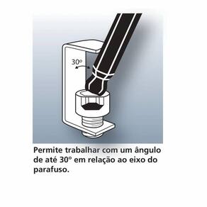 Seu corpo em forma de L com 2 braços de diferente comprimento, permite a aplicação de torque em parafusos posicionados em diferentes profundidades. Disponíveis com encaixes hexagonal, trafix e multidentada com modelos, curtos, longos, extra longos com e sem furo guia. Escolha o tamanho e perfil ideal para o seu trabalho e mãos à obra. Orientações Haste em aço ferramenta S2 e temperada. Acabamento fosfatizado.Ponta abaulada.DIN ISO 2936.As chaves tipo L ou Cabo T são submetidas a ensaios de torque e de dureza para analisar a resistência mecânica e atender aos valores da norma específica.Grande variedade de formas, perfis de pontas e comprimentos para as diversas aplicações automotivas e industriais.As chaves tipo L possuem dois braços de comprimentos diferentes, e ambas extremidades podem ser utilizadas dependendo do local onde será realizado o trabalho. Ao utilizar o braço mais longo tem-se mais torque, enquanto o braço mais curto promove uma operação mais rápida.Apertar ou afrouxar parafusos com sextavado interno.As ferramentas são produzidas e testadas conforme normas específicas. Observações Use óculos, luvas e outros equipamentos de proteção individual (EPIs) de acordo com a tarefa a ser executada. Utilize o tamanho certo da chave para cada bitola de parafuso. Não faça aproximações de dimensionais, polegadas para milímetros, por exemplo. Não use tubos ou extensões para obter mais torque. Não golpeie as chaves. Não modifique o braço de alavanca da chave usando tubos ou barras extensoras. Armazene em local limpo e seco. Características Gerais EAN13 7891114028027 DUN14 17891114028024 NCM 8205.40.00 Peso Líquido 0,0100 kg. Peso Bruto 0,0100 kg. Metragem 0,000033 m³. Dimensões Embalagem (Compr. X Larg. X Alt.) 110x 30x 10 mm. Dimensões Produto (Compr. X Larg. X Alt.) 90x 3x 3 mm. Dimensão Extra A 18,0 mm. Dimensão Extra B 90,0 mm. Dimensão Extra C 2,5 mm.