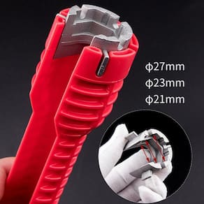 Ferramenta de encanamento universal, adequado para 99% porcas de torneira. É uma ferramenta muito útil para trabalhos em pias e encanamentos, pois ela permite que sejam aplicados níveis de torque mais elevados do que seriam possíveis com uma chave convencional, o que pode facilitar muito a tarefa de desmontar ou apertar peças. Uma chave hidráulica pode ser muito útil para remover e instalar um sifão novo, instalação de novas tubulações e Aperto de conexões. chave. 3 cabeça de chave substituível, 2 parafusos de fixação, extrator de parafuso longo, slot aberto permite fácil acesso às linhas de abastecimento existentes, como torneiras, pia, tubos de aquecedor de água, bacias de água.
