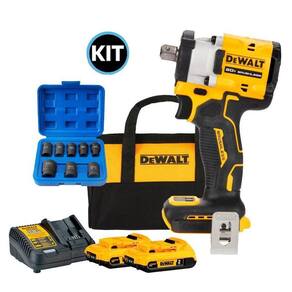 Chave De Impacto 1/2 A Bateria 20V Dewalt Dcf922D2-Br Com 2 Baterias 2Ah Carregador Bivolt + Jogo De Soquete 8 Pecas Chave de impacto 1/2 a bateria 20v dewalt dcf922d2-br com 2 baterias 2ah e carregador bivolt + jogo de soquete 8 pecas Chave de impacto 1/2 bateria 20v dewalt dcf922d2-br: A chave de impacto sem fio dcf922 atomic 20v max Foi projetada para lidar facilmente com vários projetos de fixação.Escolha entre 4 configurações de velocidade, incluindo o recurso de controle precision wrench tm e o modo timber screw tm permitindo maior desempenho e versatilidade em alto nível. As áreas de trabalho escuras não são problema com esta chave de impacto sem fio, que vem com uma luz de trabalho led para visibilidade em espaços com pouca luz. Especificações técnicas:Voltagem: 20v maxMotor sem escovas de carvãoTamanho do encaixe: 13mmVelocidade sem carga: 0 - 2500 rpmTorque máximo de aperto: 406 nmTorque máximo de reversão: 610 nmMotor sem escovas de carvão brushless Encaixe quadrado 13mm Design compacto e leveLuz led Jogo de soquete 1/2 8 pecas Fabricado em aço crv possui maior resistência e durabilidade a impactos. Além disso, possui acabamento que lhe confere maior proteção contra corrosão e maior segurança na operação. Especificações técnicas:Quantidade: 8 peças; Encaixe: 1/2;Medidas: 10 - 12 - 13 - 14 - 17 - 19 - 21 - 24 mm. Itens inclusos:01 - chave de impacto 1/2 bateria 20v dewalt dcf922d2-br;02 - baterias 20v max 2.0 ah ;01 - carregador bivolt dcb115-br;01 - bolsa para transporte;01 - jogo de soquete 1/2 8 pecas Imagem meramente ilustrativa