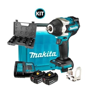Chave de impacto 1/2 bateria 18v lxt makita dtw700z + kit 2 baterias 5ah e carregador bivolt + jogo de soquete 10 peças