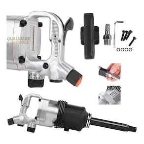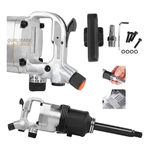 Chave De Impacto Pneumática 1 Com Eixo Longo. Equipamento Profissional Encaixe: 1/ Consumo de Ar Médio: 12.5 CFM Pressão de Trabalho: 90 psi 6,2 Kgf/cm2 Rotação Livre: 3900 RPM Torque máximo: 2200 N.M / 170 kgf.M Comprimento Total: 55 cm Peso Aproximado: 17 kg Entrada de ar: 1/2 Alça Lateral ATENÇÃO Esta ferramenta só pode ser utilizada se conectada a um compressor de ar. Marca: Não Informado