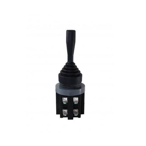 Chave manipuladora que permite o controle da alavanca nas quatro direções. Possui capa protetora de borracha à prova dágua, resistente a óleo e à prova de pó, furo de montagem de diâmetro 30mm.Especificações:descrição: 2 posições com retorno ao centro 2NA por posição Capacidade dos contatos: 5A - 110VCA / 3A - 220VCA / 1A - 440VCACorrente de condução: 10A máx.Resistência de isolação: 100MOhms 500VCC Rigidez dielétrica: 2200VCA - 1 minutoVida elétrica: min. 500.000 operaçõesVida mecânica: min. 500.000 operaçõesTemperatura ambiente: -20 50CDimensões: AxLxP 206x51x51mmREF: TMRN302-2020-20002000DEAK: 8433