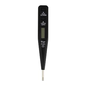 Mantenha um dedo em contato com um dos polos de bateria e a ponta da chave teste em outro polo (0 display indicara valores a partir de 12V);
