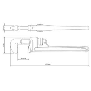 Na hora de realizar a manutenção ou instalação de tubos hidráulicos, aposte em ferramentas que podem deixar o seu trabalho ainda mais fácil. A Chave para Tubos 18 polegadas Tramontina com Corpo em Ferro Fundido e Mandíbulas em Aço Alto Carbono Modelo Americano possui fabricação em material de altíssima qualidade além de ser muito versátil, pois esse item conta com mordente regulável. Seus afazeres sempre em dia com Tramontina! Orientações Mandíbulas forjadas em aço alto carbono e temperadas.Corpo e porca reguladora de abertura em ferro fundido.Abertura dos mordentes regulável.Pintura eletrostática.O teste de dureza é realizado em vários pontos para assegurar a resistência ao desgaste da chave durante o uso ininterrupto. Específica para instalações e manutenções hidráulicas.Mais indicada para tubos não endurecidos.As ferramentas são produzidas e testadas conforme normas específicas. Observações Use óculos, luvas e outros equipamentos de proteção de acordo com a tarefa a ser executada. Não golpeie as chaves, a não ser que sejam projetadas para este fim. Sempre utilize uma chave de bitola correta para cada parafuso ou porca para que não haja folga, pois isso danifica a chave e o parafuso. Mantenha a chave limpa para um melhor agarre, pois usá-la suja com graxa ou óleo pode causar acidentes. Não use tubos ou extensões para obter mais torque. Não altere a forma original das chaves. Armazene em local limpo e seco. Características Gerais EAN13 7891114101119 DUN14 17891114101116 NCM 8204.12.00 Peso Líquido 2,3000 kg. Peso Bruto 2,3000 kg. Metragem 0,004140 m³. Dimensões Embalagem (Compr. X Larg. X Alt.) 575x 90x 80 mm. Dimensões Produto (Compr. X Larg. X Alt.) 475x 90x 26 mm. Cor 1 FDD200 Hexa Dimensão Extra A 90,0 mm. Dimensão Extra B 475,0 mm. Dimensão Extra C 62,5 mm. Dimensão Extra D 26,0 mm.