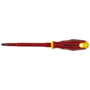 Chave phillips vde 5/16x150mm BeltoolsDescrição:Atende norma internacional EN/IEC 60900:2004. Cabo e haste isolados para 1.000 V. Testada individualmente. Com formato anatômico que proporciona melhor manuseio.Indicação:Indicada para fixar e soltar parafusos de fenda cruzada/phillips. Ideal para atividades em áreas energizadas.Medida da ponta: 5/16"Comprimento da haste: 150mm.Comprimento total: 260mm.Material da haste: Aço cromo vanádio.Acabamento da haste: Haste isolada 1000 V.Material do cabo: Polipropileno revestido com borracha termoplástica.Cor do cabo: Vermelho e amarelo.Marca: BeltoolsCódigo: 60961