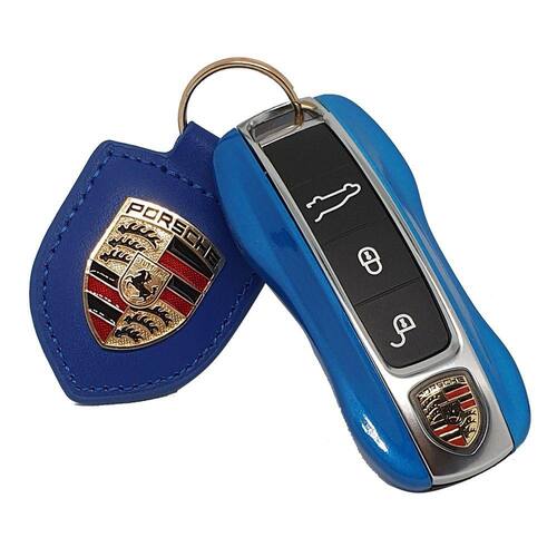 Chave Porsche 911 Cayenne Taycan Panamera Macan - Cor: Azul Claro com Cromado