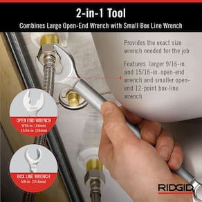 - Ferramenta 2 em 1: possui 15/40.6 cm. chave de boca aberta, 9/40.6 cm. chave de ponta aberta e uma chave de linha de caixa de 12 pontos aberta em uma ferramenta para tornar o encanamento rápido e fácil