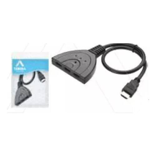 A Chave Seletora HDMI 3 X 1 1080P TEBERA é um dispositivo eletrônico que permite conectar até três dispositivos com saída HDMI em uma única entrada HDMI da TV ou monitor, selecionando o sinal a ser exibido.