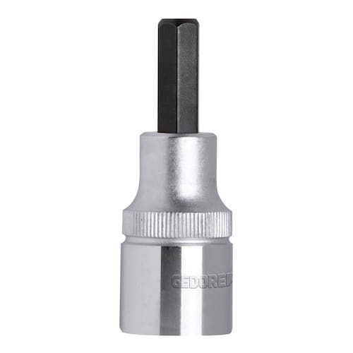 Produto feito em aço Gedore-Vanadium. Soquete com acabamento niquelado e cromado/ zincado, com ponteira escurecida. Para trabalhar com acessórios manuais com encaixe quadrado 12,7 mm (1/2”), conforme DIN 3120 - C 12.5, ISO 1174. Indicada para parafusos com perfil de encaixe sextavado interno.