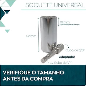 O soquete universal foi projetado para ajustar-se instantaneamente a vários tipos de parafusos e porcas de 7mm a 19mm. Possui 54 hastes de aço que servem para segurar porcas sextavadas, porcas borboleta, porcas quadradas e especialmente porcas quebradas e enferrujadas.