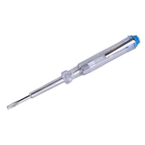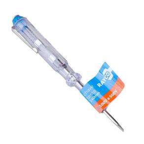 Chave teste 140mm -100v a 500v rayco Chave de teste voltagem 100v a 500v 140mm rayco - Haste em aço cromado e cabo em plástico abs Tensão de trabalho: 100v a 500v Características gerais do produto: Composição: aço; polímero Comprimento: 14 centímetros Cor: transparente Garantia: 90 dias junto ao fabricante