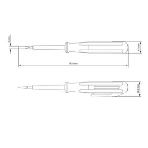 A Chave Teste Tramontina com Ponta Cruzada 1/8x3 polegadas em Aço Especial traz mais segurança e qualidade para as tarefas na construção civil ou pequenos reparos. Projetada para verificar a presença ou não de corrente elétrica em instalações, ela é a melhor companhia para o trabalho dos eletricistas. Possui 1/8x3 polegadas e capacidade de 80-250 V. É uma chave teste com ponta cruzada feita em materiais de qualidade. A haste é produzida em aço especial temperado e possui acabamento niquelado, tornando ela ainda um item diferenciado. É uma ferramenta ideal para ter sempre por perto! Orientações Haste em aço especial temperado.Acabamento niquelado.Circuito elétrico ativado através de botão na extremidade do cabo.Lâmpada de neon.Apropriada para 80 - 250 V.As hastes as chaves de fenda são testadas em máquinas de ensaio específicas, para verificar o perfeito balanço entre resistência mecânica e dureza.Cabos injetados com material de alta resistência.Os dimensionais das pontas são verificados comgabaritos-padrão, calibrados e certificados.As ferramentas são produzidas e testadas conforme normas específicas. Observações Use óculos, luvas e outros equipamentos de proteção de acordo com a tarefa a ser executada. Utilize chaves de fenda isoladas, identificadas pela marcação 1.000 V, quando for necessário trabalhar em locais com corrente elétrica. Importante: nestes casos, inspecione a integridade da isolação elétrica, e, se aparecerem trincas na isolação, suspenda o uso imediatamente. Utilize chaves com ponta adequada para cada tipo de fenda, para realizar a tarefa de forma mais rápida e segura. Respeite o torque estabelecido por norma para cada bitola. Não utilize as chaves de fenda como formão ou alavanca. Não altere as dimensões originais da ponta para obter outro perfil. Armazene em local limpo e seco. Características Gerais EAN13 7891114005806 DUN14 17891114005803 NCM 9030.33.90 Peso Líquido 0,0400 kg. Peso Bruto 0,0400 kg. Metragem 0,000200 m³. Dimensões Embalagem (Compr. X Larg. X Alt.) 200x 50x 20 mm. Dimensões Produto (Compr. X Larg. X Alt.) 143x 15x 19 mm.