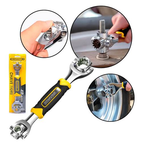 A Chave Tigre 48 em 1 é a solução prática e versátil para quem precisa de eficiência e agilidade em reparos, montagens e manutenções. Seu design multifuncional com cabeças rotativas em 360° permite trocar entre diversos tamanhos de soquete sem necessidade de ferramentas adicionais. Perfeita para mecânicos, montadores, instaladores e até uso doméstico.