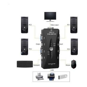 Este produto permite que você controle até 4 PC é a partir de um Teclado e mouse USB. Ele é ótimo para estações de trabalho, bancos de ensaio, redes ou em qualquer lugar foram tasking entre computadores é necessária. Fácil de instalar e operar, simplesmente alternar entre computadores pelo Push-Botão na parte superior do dispositivo. Marca: Não Informado