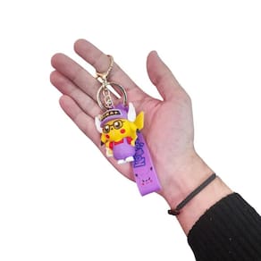 Transforme seu dia com o chaveiro 3D do Pikachu mais estiloso do universo Pokémon Com design exclusivo, este modelo apresenta o Pikachu usando macacão roxo, bonézinho e óculos, em uma versão super fofa e divertida.