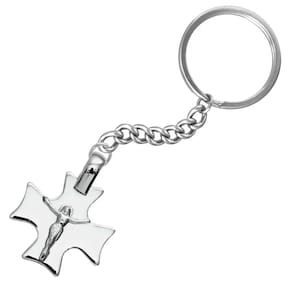 Chaveiro Aço Cruz Quadrada com Cristo 27x27mm
