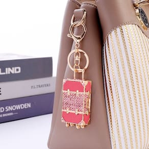 Material: liga e strass Tamanho: 7,5* 4 cm Peso: 63 g Design criativo de bagagem: este chaveiro apresenta um design elegante de mala rosa adornado com strass cintilantes, adicionando um toque moderno aos seus acessórios. Materiais premium: feito de liga e strass de alta qualidade, este chaveiro oferece elegância e durabilidade, garantindo beleza duradoura. Uso versátil: perfeito para prender na bolsa, mochila ou chaves do carro, este chaveiro é uma ótima maneira de personalizar seus acessórios. Leve e compacto: medindo 7,5* 4 cm e pesando apenas 63 g, é fácil de transportar sem aumentar o volume, perfeito para o uso diário. Moderno e atraente: a combinação de detalhes em rosa e strass torna este chaveiro um acessório divertido e estiloso que se destaca onde quer que você vá.
