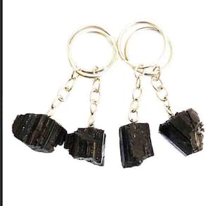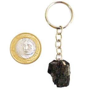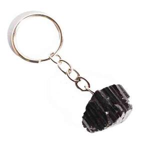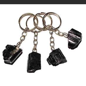 Chaveiro de canudo de turmalina preta com corrente prateada, uma peça elegante, sofisticada e protetiva para acompanhar suas chaves.