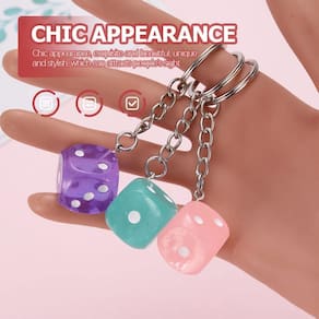 - 🎲🗝? O tamanho do chaveiro Dice é de cerca de 2,00 x 2,00 x 2,00 cm/0,79 x 0,79 polegadas, tamanho pequeno, leve e fácil de transportar ao sair.