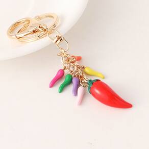 Material: Tamanho da liga: 1,3* 13 cm Peso: 25,4 g Creative Chili Design: apresenta um vibrante cacho de pimenta em tons de vermelho, rosa, verde e laranja, trazendo um estilo animado e divertido aos seus acessórios. Material de liga premium: feito de liga de zinco durável com revestimento de esmalte liso, garantindo brilho de cor duradouro e resistência ao desbotamento ou ferrugem. Detalhes feitos à mão: cada pingente de pimenta é finamente elaborado para uma aparência realista e um brilho elegante, destacando uma sensação de arte artesanal. Decoração versátil: perfeita para colocar nas chaves do carro, bolsas, mochilas ou carteiras; adiciona um toque de cor divertido aos itens de transporte do dia a dia. Adequado para todos os gêneros: um elegante chaveiro unissex para homens e mulheres que gostam de designs ousados e criativos que mostram personalidade e talento.