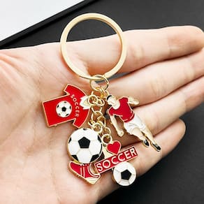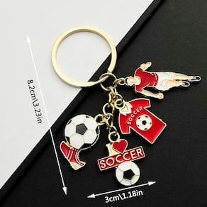 Material: liga de zinco Tamanho: 3* 8,2 cm Peso: 11 g Design exclusivo de futebol: apresenta uma camisa de futebol, chuteira, bola de futebol e um charme dinâmico de jogador de futebol, tornando-o o acessório perfeito para fãs de futebol e entusiastas do esporte. Material de liga de zinco durável: feito de liga de zinco de alta qualidade para durabilidade duradoura e um acabamento elegante e brilhante. Ideal para uso diário como chaveiro ou pingente de bolsa. Compacto e leve: mede 3* 8,2 cm e pesa apenas 11 g, o que o torna leve e fácil de transportar sem aumentar o volume de suas chaves ou bolsa. Chaveiro versátil: perfeito para prender em chaves, mochilas, bolsas de ginástica ou qualquer outro acessório pessoal. Um ótimo complemento para quem gosta de futebol ou cultura esportiva. Ótimo para colecionadores: ideal para colecionadores de memorabilia de futebol ou como um acessório divertido para quem está comemorando a Copa do Mundo, jogos de futebol ou eventos com temas esportivos.