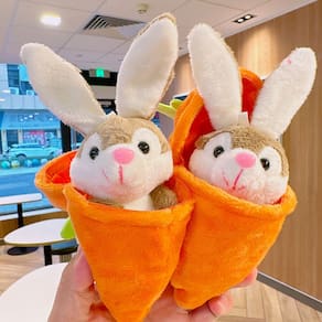 Material: pelúcia, tamanho da liga: 6,8* 17,5* 6 cm Peso: 45 g 🥕 Design transformador exclusivo — apresenta um coelhinho de pelúcia criativo escondido dentro de uma bolsa em forma de cenoura que pode ser aberta e fechada para uma divertida brincadeira interativa. Material macio e de alta qualidade — Feito de pelúcia e liga premium, proporcionando uma textura macia e suave com costura durável para uso duradouro. Acessório seguro de chaveiro — vem com um fecho e anel de metal resistentes, permitindo fácil fixação em chaves, bolsas, mochilas ou interiores de automóveis. Acessório versátil e adorável — perfeito como pendente de chaveiro, pingente de pelúcia ou acessório decorativo para mochilas escolares, bolsas ou itens de viagem. Compacto e leve — mede 6,8 × 17,5 × 6 cm e pesa apenas 45 g, fácil de transportar e adequado para adultos, adolescentes e crianças.