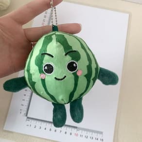 Material: pelúcia Tamanho: 11 cm Peso: 45 g Design adorável de melancia: apresenta uma melancia de pelúcia verde redonda com um rosto bordado alegre e bochechas coradas, adicionando um toque frutado divertido aos seus acessórios. Tecido macio e de alta qualidade: feito de material de pelúcia premium, ultramacio, agradável à pele e durável o suficiente para uso duradouro. Acessório versátil: funciona como um chaveiro para as chaves do carro ou da casa e funciona como um lindo pingente para mochilas, bolsas ou carteiras. Leve e compacto: mede 11 cm, é fácil de transportar e perfeito para decorar sua mochila ou bolsa escolar com um visual divertido. 🦰 Perfeito para todas as idades: adequado para meninas, meninos, mulheres e homens que adoram brinquedos de pelúcia divertidos no estilo kawaii e desenhos coloridos de frutas.
