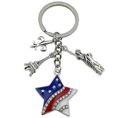 Material: liga de zinco Tamanho: 3* 8,6 cm Peso: 11g Design patriótico: com uma estrela adornada com a bandeira americana, junto com miniaturas da Estátua da Liberdade e da Torre Eiffel, este chaveiro captura o espírito dos EUA e da França. Liga de zinco premium: feito de liga de zinco durável, este chaveiro garante qualidade duradoura, com detalhes vibrantes de esmalte que não desaparecem com o tempo. Perfeito para viajantes: ideal para quem gosta de explorar e apreciar pontos turísticos internacionais, este chaveiro é uma ótima maneira de mostrar amor pelos EUA e pela França. Compacto e elegante: com 3x8,6 cm e 11g, este chaveiro tem o tamanho perfeito para prender em bolsas, chaves ou mochilas sem aumentar o volume, sem deixar de ser ousado. Versátil e significativo: um ótimo acessório para celebrações do Dia da Independência, entusiastas de viagens ou como peça comemorativa para aqueles apaixonados por marcos globais e patriotismo.