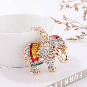 Material: liga de zinco Tamanho: 5,4* 4,3 cm Peso: 48,5 g Design elegante de elefante — Apresenta um elefante lindamente criado coberto de strass cintilantes com detalhes em esmalte vermelho, amarelo e verde para uma aparência vibrante e exótica. Material de liga de zinco durável — Feito de metal resistente com revestimento dourado que resiste a manchas e retém seu brilho, garantindo um uso duradouro. Símbolo de força e sorte — O design do elefante representa proteção, sabedoria e boa sorte, tornando-o um acessório significativo para o estilo cotidiano. Uso versátil — Funciona como um elegante chaveiro, chaveiro ou chaveiro para organizar as chaves do carro, as chaves da casa ou como um pingente para bolsas, carteiras e mochilas. Compacto e atraente — mede aproximadamente 5,4 × 4,3 cm e pesa cerca de 48,5 g, o que o torna leve e luxuoso para carregar tanto homens quanto mulheres.