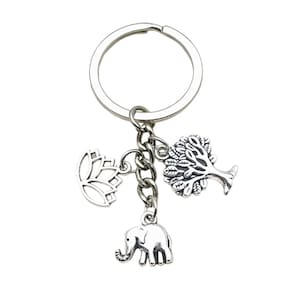 • Design encantador de animais e natureza: este chaveiro apresenta uma combinação deliciosa de pingentes de elefante, flor de lótus e árvore, criando um acessório exclusivo inspirado na natureza que adiciona um toque extravagante a qualquer bolsa. • Durável e elegante: feito de metal de alta qualidade com acabamento polido, este chaveiro é resistente e elegante. Seu design minimalista e cativante o torna um ótimo complemento para sua coleção de chaves. • Perfeito para o uso diário: coloque este chaveiro na bolsa, mochila ou chaves do carro. Seu design versátil se adapta a qualquer estilo, adicionando um toque de charme e elegância aos seus acessórios sem sobrecarregar sua aparência. • Ótimo presente para amantes da natureza e dos animais: este chaveiro é um presente atencioso para quem aprecia a natureza, a vida selvagem ou acessórios minimalistas. Ideal para aniversários, feriados ou apenas como uma doce surpresa para um amigo. • Compacto e leve: com um tamanho de 6,5* 3 cm e pesando apenas 8,5 g, este chaveiro é leve e fácil de transportar, tornando-o o acessório prático perfeito para uso em qualquer lugar sem aumentar o volume.