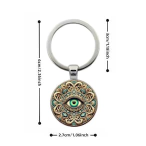 Material: Metal Tamanho: 2,7* 6 cm Peso: 15 g Design de olhos místicos: apresenta um padrão detalhado de mandala com um centro azul vívido dos olhos, simbolizando proteção e energia positiva. Artesanato em metal de alta qualidade: feito de liga metálica durável, resistente à ferrugem e ao desbotamento, mantendo seus detalhes intrincados. Compacto e leve: medindo 6 × 2,7 cm e pesando apenas 15 g, ideal para uso diário em chaves, bolsas ou mochilas. Artístico e simbólico: combina elementos boêmios e espirituais, adequados para quem aprecia acessórios significativos com um toque artístico. Uso versátil: perfeito como um elegante organizador de chaves ou como um pingente decorativo para seu carro, bolsa ou espaço doméstico.