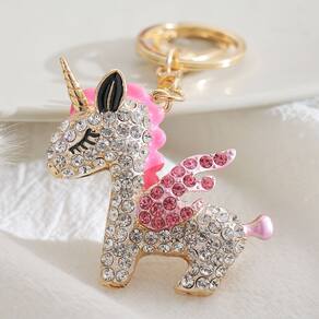Material: strass e liga. Tamanho: 6* 5 cm Peso: 41 g Design divertido de unicórnio: este chaveiro apresenta um adorável unicórnio com detalhes em strass e uma cor rosa vibrante, adicionando um toque de magia aos seus acessórios. Detalhes em strass cintilante: coberto com strass, este chaveiro brilha na luz, tornando-o um acessório elegante e atraente para suas bolsas ou chaves. Material de liga de alta qualidade: feito de liga durável e strass, este chaveiro é resistente e elegante, projetado para suportar o uso diário, mantendo seu charme. Tamanho perfeito para uso diário: com dimensões de 6 x 5 cm e pesando apenas 41 g, este chaveiro é compacto e leve, ideal para transportar sem aumentar o volume. Ideal para amantes de unicórnios: indispensável para quem adora unicórnios, este chaveiro é um acessório fofo e funcional para quem adora designs extravagantes inspirados em desenhos animados.
