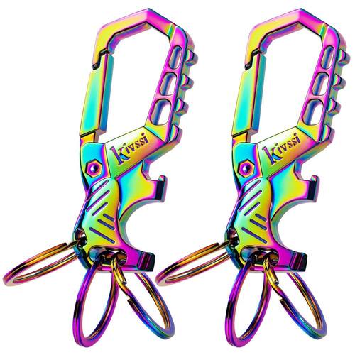 Este é o tipo de chaveiro que um cara durão deve ter: é feito de metal por toda parte e é fácil de carregar chaves de casa e chaves do carro com segurança. - Peso do tamanho individual: comprimento do tamanho 8 cm, largura 1,63 cm, altura 1 cm, peso cerca de 65 g - Introdução do material: O chaveiro é feito de material metálico, resistente a arranhões, resistente à ferrugem, durável - Descrição da função: Integra três funções: chaveiro, chave de fenda de cabeça chata e abridor de garrafa, tem três anéis no clipe para ajudar a organizar suas chaves, abrir a tampa da garrafa, abrir a tampa da lata, abrir um expresso que também seja conveniente - Introdução ao design: É uma estrutura nova e estranha do chaveiro, design estético com sentido mecânico, design ergonômico, a forma está alinhada com a aderência manual - Estilo versátil: chaveiro para homens e mulheres, seja para chaves de família, chaves de carro ou como um acessório de moda, ele se adapta às suas necessidades