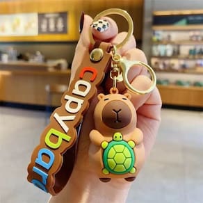 Material: silicone Tamanho: 5* 9 cm Peso: 50 g Design adorável de capivara: apresenta uma encantadora figura de capivara marrom segurando uma pequena tartaruga verde, trazendo uma atmosfera fofa e divertida aos seus itens diários. Alça colorida para letras: vem com uma pulseira de silicone macio em “capivara” em letras multicoloridas brilhantes, adicionando um toque moderno e divertido. Material de silicone durável: feito de silicone de alta qualidade que é macio, flexível e resistente ao desgaste, adequado para uso a longo prazo. Chaveiro de metal seguro: inclui um chaveiro e um fecho robustos em tom dourado para facilitar a fixação nas chaves do carro, bolsas ou mochilas. Acessório perfeito para todas as idades: ótimo para mulheres, homens e adolescentes que amam desenhos de animais fofos e querem um acessório divertido para carregar todos os dias.