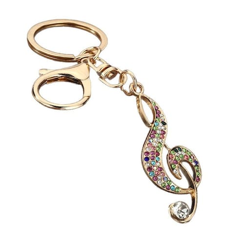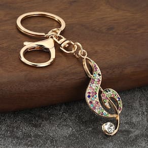 Material: liga de zinco Tamanho: 2,3* 5,5 cm Peso: 12,5 g Design elegante de notas musicais: apresenta um pingente de notas musicais lindamente elaborado, adornado com strass coloridos, oferecendo um acessório vibrante e elegante para amantes da música. Material de liga de zinco premium: feito de liga de zinco de alta qualidade, este chaveiro é durável e leve, proporcionando um acabamento polido e duradouro. Versátil e elegante: perfeito para personalizar sua bolsa, mochila ou chaves, adicionando um toque musical e luxo aos seus acessórios. Compacto e leve: com apenas 2,3* 5,5 cm e 12,5 g, este chaveiro é compacto, fácil de transportar e ideal para anexar aos seus itens favoritos. Perfeito para entusiastas da música: um presente ideal para músicos, amantes da música ou qualquer pessoa que goste de acessórios elegantes, este chaveiro dá um toque criativo e moderno aos seus itens diários.