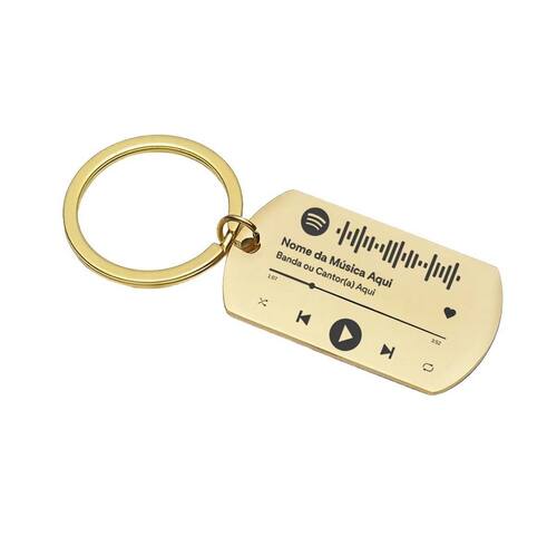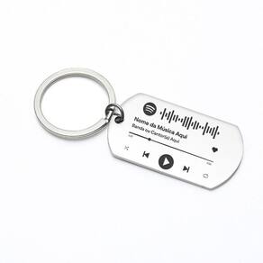 Chaveiro luxo com 4 cores disponíveis em aço inox brilhante tag com spotify code. Em alta definição