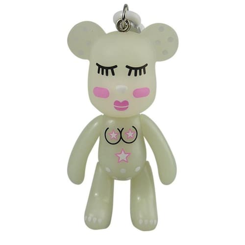 Cada Popobe Bear é pintado à mão e, apesar de todos terem a mesma forma, cada um representa uma personagem diferente.Chaveiro Popobe Fosforescente Love