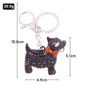 Material: liga de zinco Tamanho: 5,1* 4,9 cm Peso: 39,9 g Charming Scottie Dog Design: este chaveiro apresenta um delicioso cachorro escocês preto com uma gravata borboleta vermelha, detalhado com cristais cintilantes para um acessório divertido e moderno. Liga de zinco premium: feito de liga de zinco de alta qualidade, este chaveiro oferece durabilidade e um acabamento brilhante que durará, tornando-o uma adição elegante e resistente à sua coleção de chaves. Perfeito para amantes de cães: ideal para quem adora animais de estimação, este lindo chaveiro para cães é essencial para qualquer entusiasta de animais que queira mostrar seu amor por cães de uma forma única. Acessório versátil: coloque-o em sua mochila, bolsa ou chaves para adicionar um toque de brilho e personalidade aos seus itens do dia a dia. É uma ótima maneira de manter suas chaves organizadas e, ao mesmo tempo, estar na moda. Ótimo tamanho e peso: medindo 5,1 x 4,9 cm e pesando 39,9 g, este chaveiro tem o tamanho perfeito para ser notado sem ser muito volumoso, o que o torna um acessório prático e elegante.