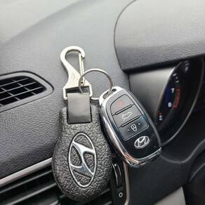 Descrição do anúncio Mostre seu orgulho Hyundai em cada detalhe. Chaveiro em material sintético texturizado , com emblema Hyundai cromado e mosquetão metálico de abertura rápida para prender no cinto, mochila ou dentro do carro.