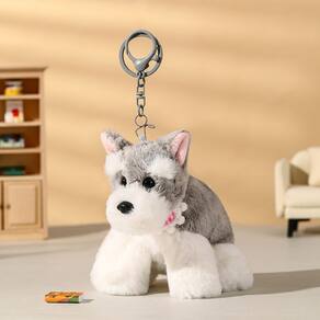Material: pelúcia Tamanho: 11* 10,5 cm Peso: 44 g Design adorável — Apresenta um lindo cachorro de pelúcia no estilo Schnauzer usando um lenço rosa, feito com detalhes realistas e texturas suaves para um visual encantador. Material macio e durável — Feito com enchimento premium de pelúcia e algodão, garantindo um toque confortável e durabilidade duradoura sem se soltar ou desbotar. Chaveiro prático — Equipado com um fecho e corrente de metal resistentes, este chaveiro de pelúcia se prende com segurança às chaves, bolsa, carteira ou interior do carro. Decoração versátil — perfeita como pingente de chaveiro, pingente de mochila, decoração de bolsa ou acessório de espelho de carro — adiciona personalidade e diversão aos itens do dia a dia. Leve e portátil — O tamanho compacto (11 × 10,5 cm) e o peso de apenas 44 g facilitam o transporte e a exibição em qualquer lugar; adequado para adultos, adolescentes e crianças.
