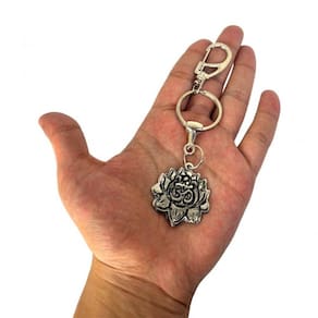 Chaveiro Simbolo do OM Na Flor de Lotus 12 cm Metal Níquel