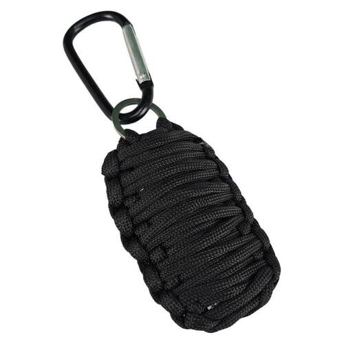 Paracord MosquetãoCaracterísticas:Feito com Paracord transado, e com Mini Mosquetão para pendurar.Medidas:Comprimento : 14 cmPeso : 36 g100% Poliamida Nylon com 7 filamentos no interiorIncluso:01 feltro inflamável 01 Linha Pesca aproximadamente 15mts 02 Boias de Pesca02 Anzóis02 Chumbos Pesca01 Agulha01 Lamina com Serra01 Mosquetão01 Pedra Pederneira01 Pedaço Papel Aluminio01 Paracord aproximadamente 2,5mts Marca: Tenda Medieval