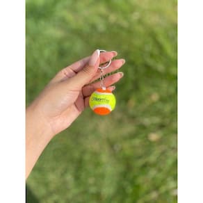 Feito com material resistente, o chaveiro possui um design em formato de bolinha de beach tennis na cor laranja, que é fácil de encontrar dentro da bolsa ou mochila. Além disso, o chaveiro é leve e compacto, perfeito para levar para qualquer lugar.